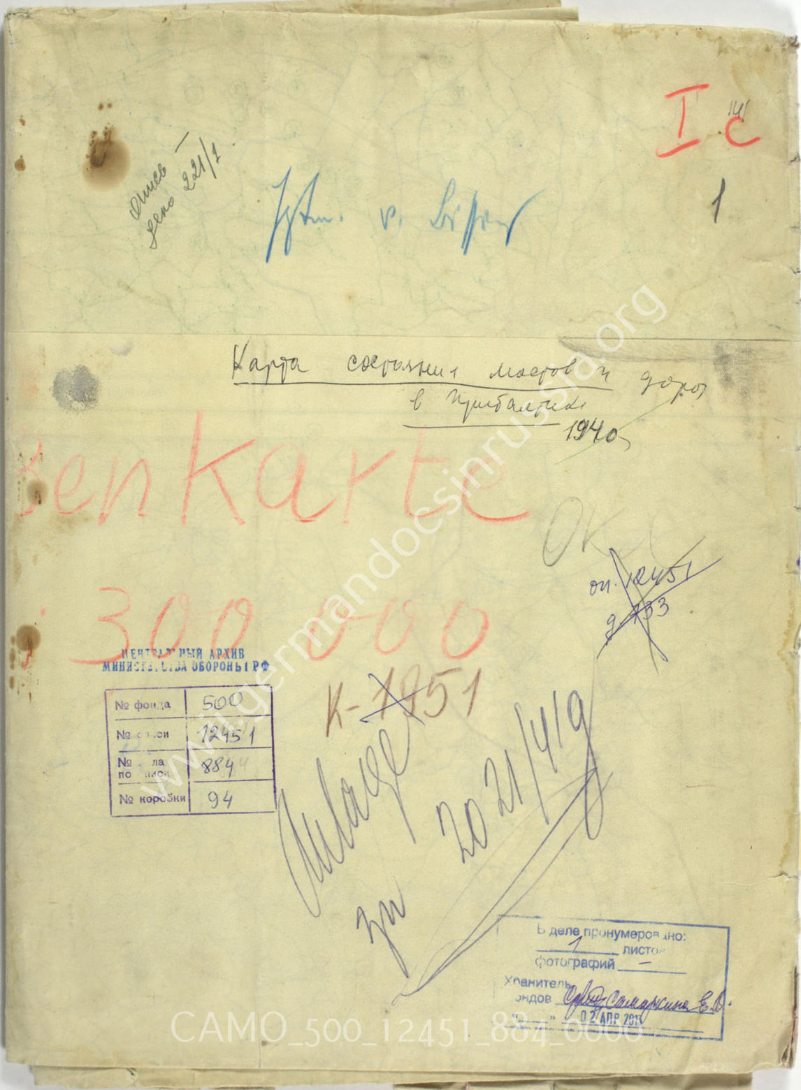 Дело 884. Документы начальника контрразведки разведотдела группы армий «Центр»: карта дорог и мостов в Прибалтике и Белоруссии (на основании данных службы контрразведки Кёнигсберга) – по состоянию на ноябрь 1940 г...