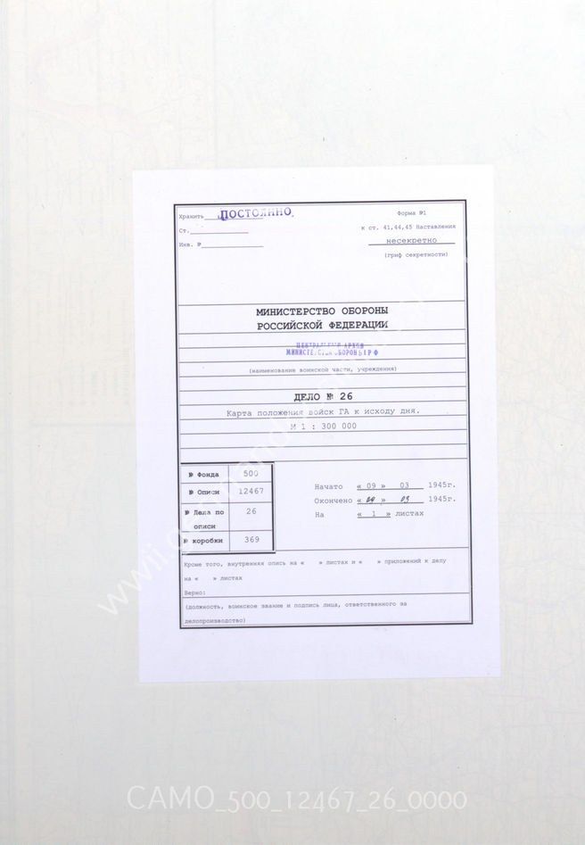 Дело 26. Карта положения войск группы армий «Висла», от 9 марта 1945г., к исходу дня. М 1:300 000