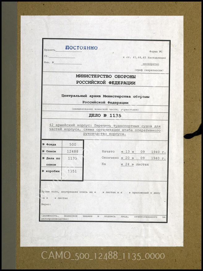 Дело 1135: Документация Ia-отдела 45-й пехотной дивизии: материалы о подразделениях 442-го начальника службы снабжения корпуса, распределение главного штаба XXXXII-го армейского корпуса для морского транспорта в рамках операции "Морской лев" и др.