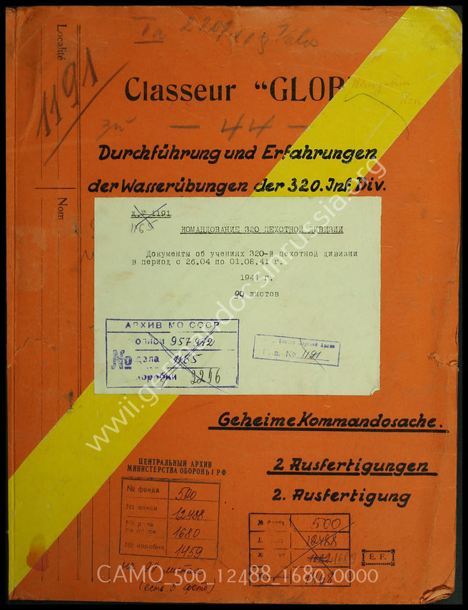 Top Фонд 500 Опись 12488 - Документы по операции "Морской лев" Дело 1680: Документация Ia-департамента 320-й пехотной дивизии: про...