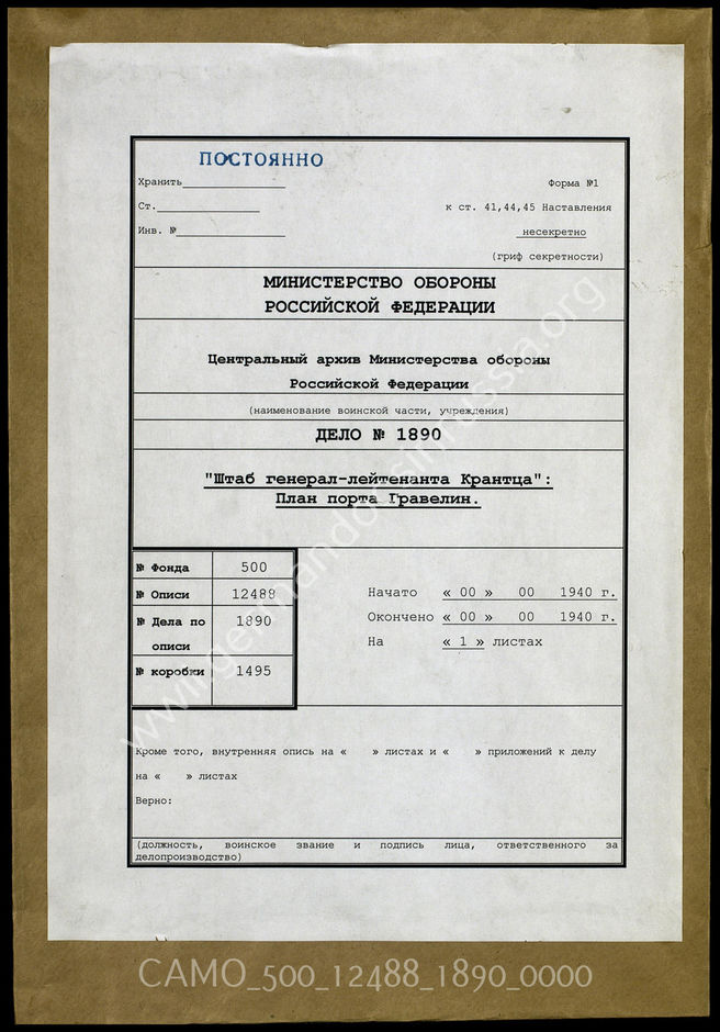 Top Фонд 500 Опись 12488 - Документы по операции "Морской лев" Дело 1890: Документы оперативного отдела оперативного штаба Кранца...