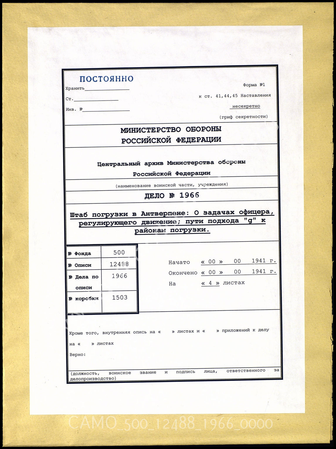 Дело 1966: Документация оперативного отдела командного штаба в Антверпене: служебные инструкции для офицера дорожно-комендантской службы, каталог улиц и т.д.