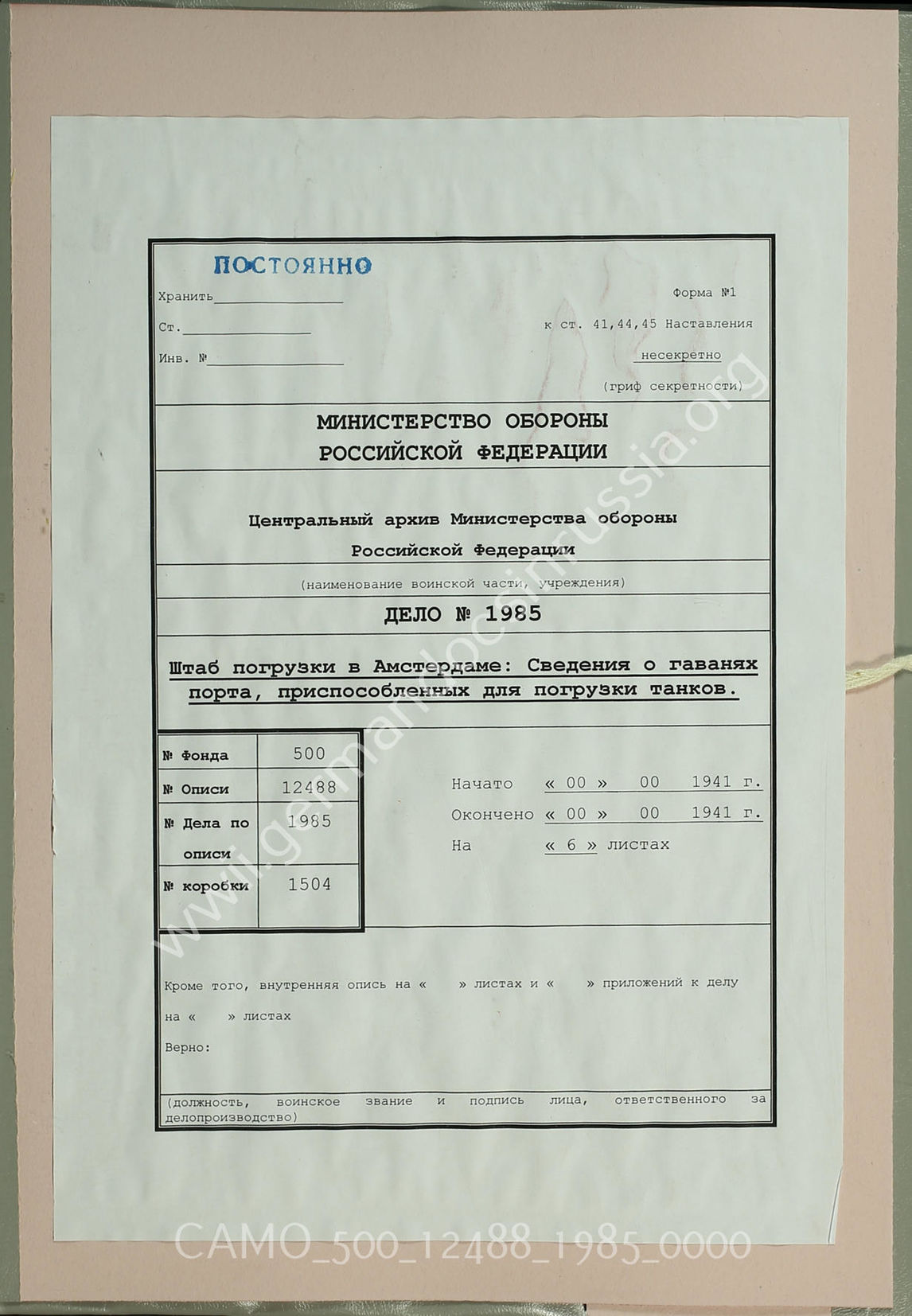 в архивах Российской Федерации