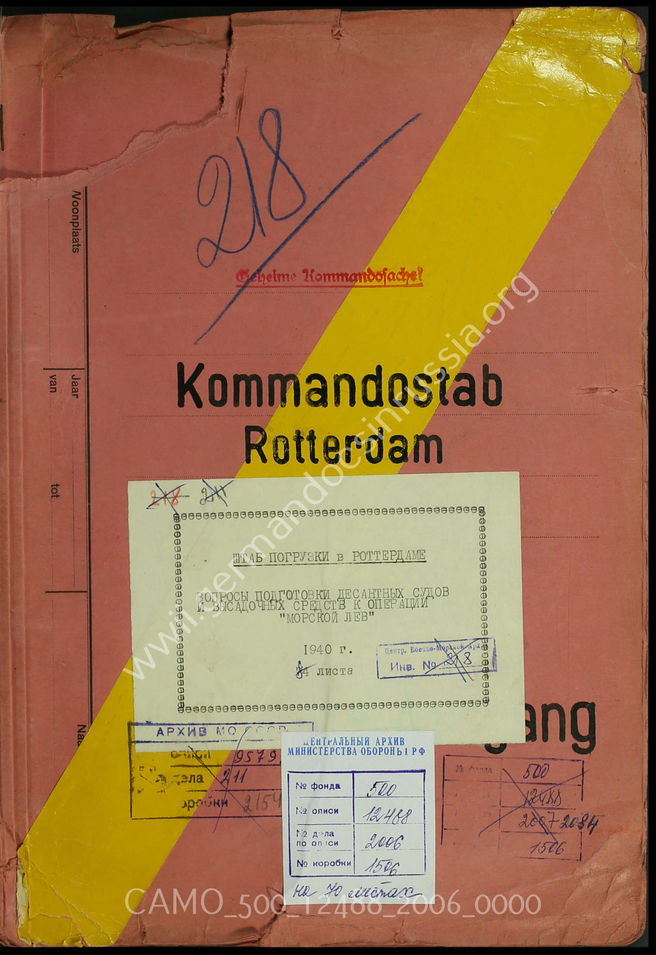 Top Фонд 500 Опись 12488 - Документы по операции "Морской лев" Дело 2006: Документация Ia-департамента штаб-квартиры в Роттердаме...
