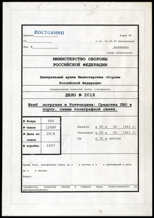 Top Фонд 500 Опись 12488 - Документы по операции "Морской лев" Дело 2018: Документация Ia-департамента штаб-квартиры в Роттердаме...