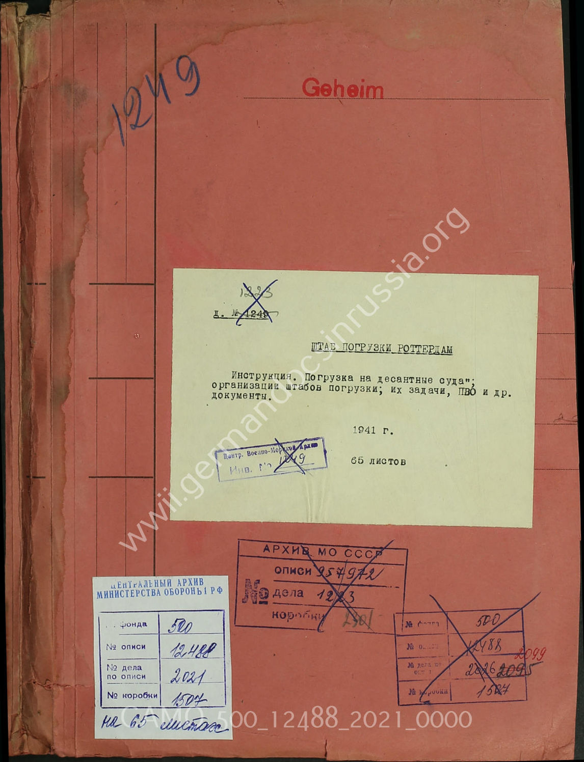 Top Фонд 500 Опись 12488 - Документы по операции "Морской лев" Дело 2021: Документация Ia-департамента штаб-квартиры в Роттердаме...