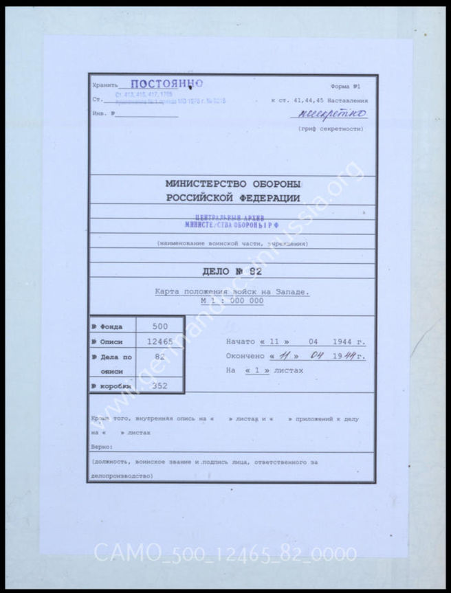 Дело 82: Документация оперативного отдела IIIb Главного штаба сухопутных войск: карта расположения Западной армии на 11.4.1944, M 1:1.000.000
