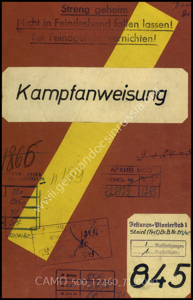 Дело 71: Документация Ia-департамента 1-го штаба крепостной инженерной части: боевая инструкция для 845-го оборонительного сооружения