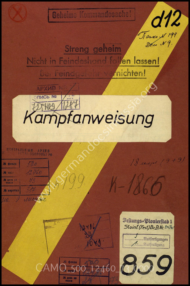 Дело 73: Документация Ia-департамента 1-го штаба крепостной инженерной части: боевая инструкция для 859-го оборонительного сооружения