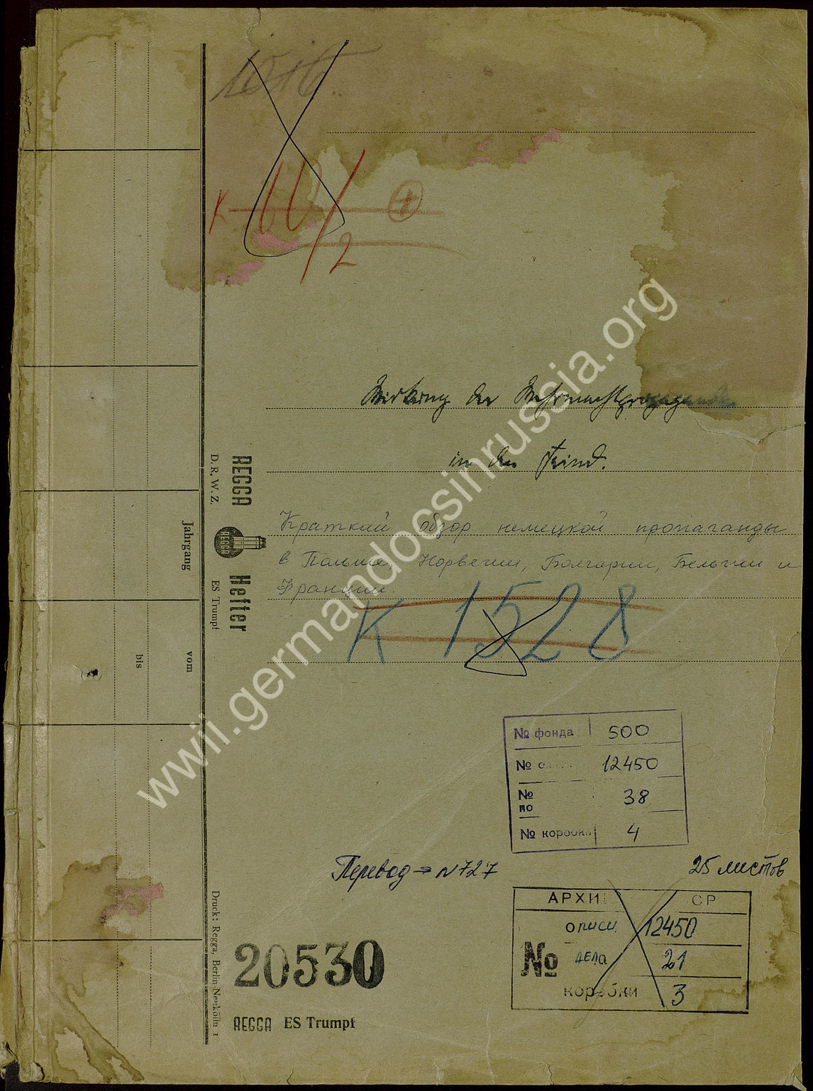 Top Фонд 500 Опись 12450 - Верховное командование вермахта (ОКВ) Дело 38. Обзор «Влияние пропаганды вермахта на противника» (1939 – ...