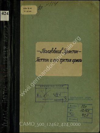Дело 424: Документы военно-исторического управления Генерального штаба Вооруженных сил СССР: перевод книги полковника Брэнтона Г. Уоллеса: «Паттон и его третья армия», Вашингтон (округ Колумбия) 1945 г.
