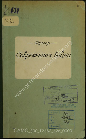 Дело 426: Документы военно-исторического управления Генерального штаба ВC СССР: Современная война. Как планируются и проводятся боевые операции, под. ред. Реджинальда Байкона, Д.Ф.С. Фуллера и Патрика Плэйфэйра, Лондон 1944 г.