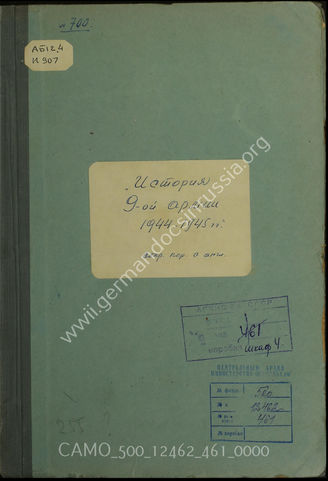 Дело 461: Документы военно-исторического управления Генерального штаба Вооруженных сил СССР: перевод материала о применении 9-й армии США во Франции и Германском рейхе, 1944–1945 гг.