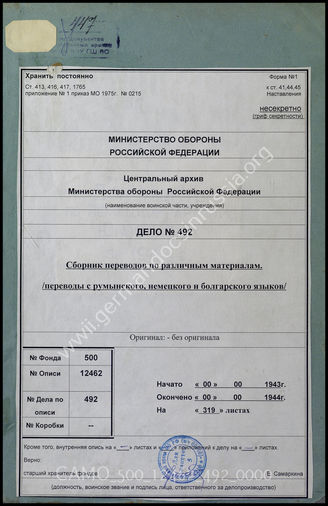 Дело 492: Документы военно-исторического управления Генерального штаба ВC СССР: сборник переводов 4-го отдела РУ ГШ КА – военно-политическая переписка и беседы между румынскими и немецкими государственными деятелями