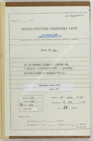 Дело 584: Документы военно-исторического управления ГШ ВС СССР: перевод документов отдела ОКХ «Иностранные армии Востока», отдела II – данные о Красной Армии и др., 24.07.1940-15.05.1941 гг.