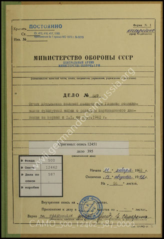 Дело 587: Документы военно-исторического управления ГШ ВС СССР: перевод документов оперативного отдела группы армий «Центр» – отчет начальника военно-полевой полиции при ОКХ о развитии партизанского движения в СССР в период 01.01.1942-30.06.1942 г.