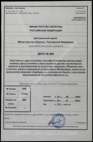 Дело 660: Документы военно-исторического управления Генерального штаба Вооруженных сил СССР: Документы о преступлениях Адольфа Хойзингера против мира, военных преступлениях и преступлениях против человечности, 30.08.1940-28.01.1944 гг.