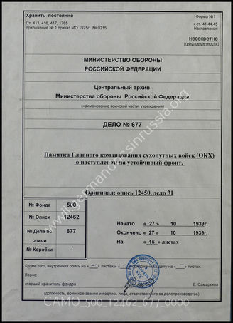 Дело 677: Документы военно-исторического управления Генерального штаба Вооруженных сил СССР: перевод документов отдела подготовки ОКХ – памятка «Атака укрепленной полосы», 27.10.1939 г.