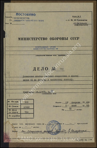 Top Фонд 500 Опись 12462 - Переводы немецких дел на русский язык Дело 753: Документы бюро переводов 6-го архивохранилища ЦАМО: перев...