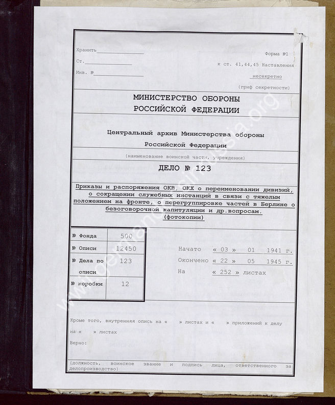 Дело 123. Приказы, распоряжения и переписка Верховного командования вермахта, других военных и государственных инстанций Германии до и после капитуляции. 3 февраля 1941 г. – 22 мая 1945 г.