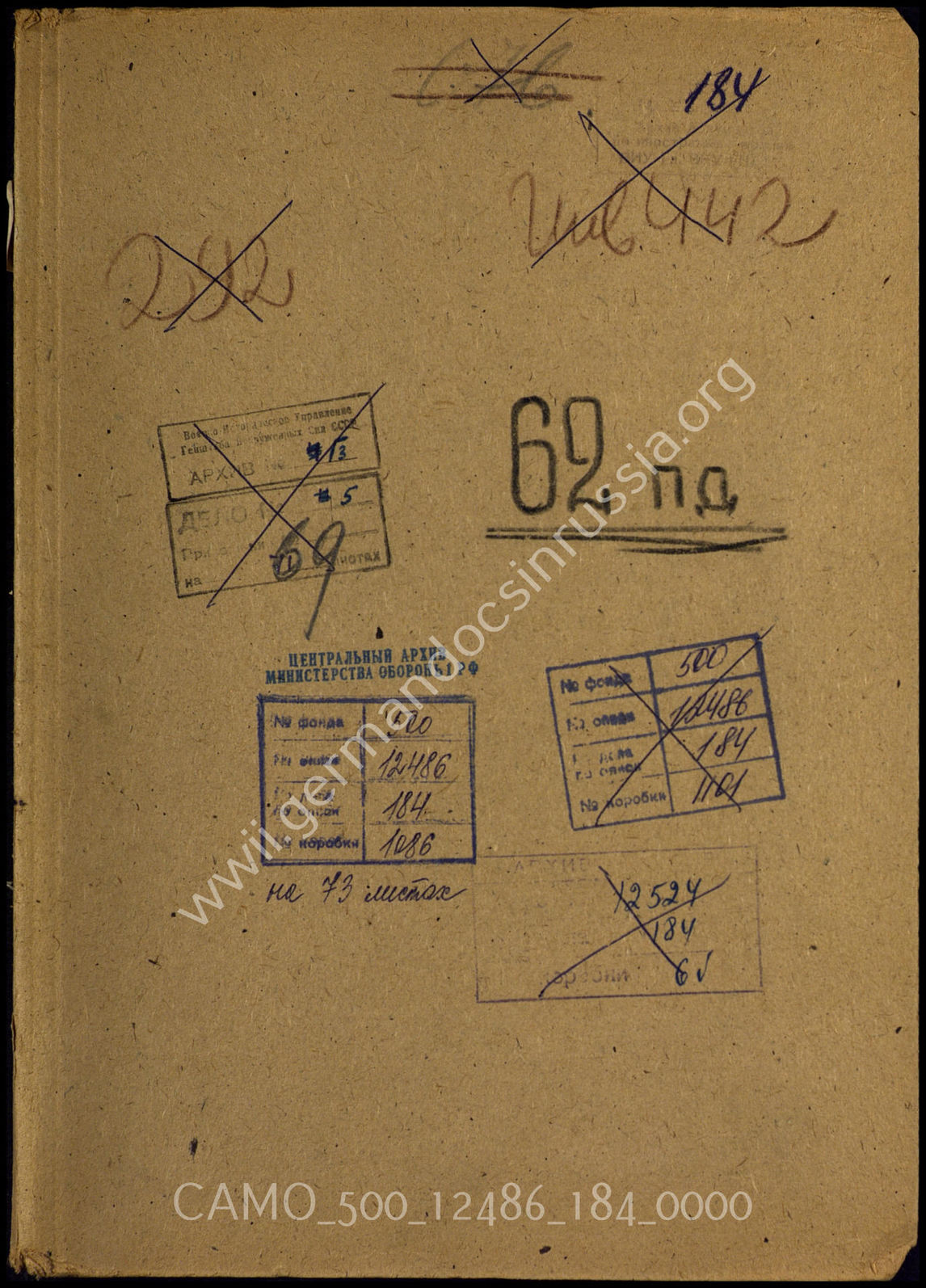 Дело 184: Документы Разведывательного Управления Генерального штаба Красной Армии: формуляры с развединформацией 62-й пехотной дивизии, допросы военнопленных и перебежчиков и проч.