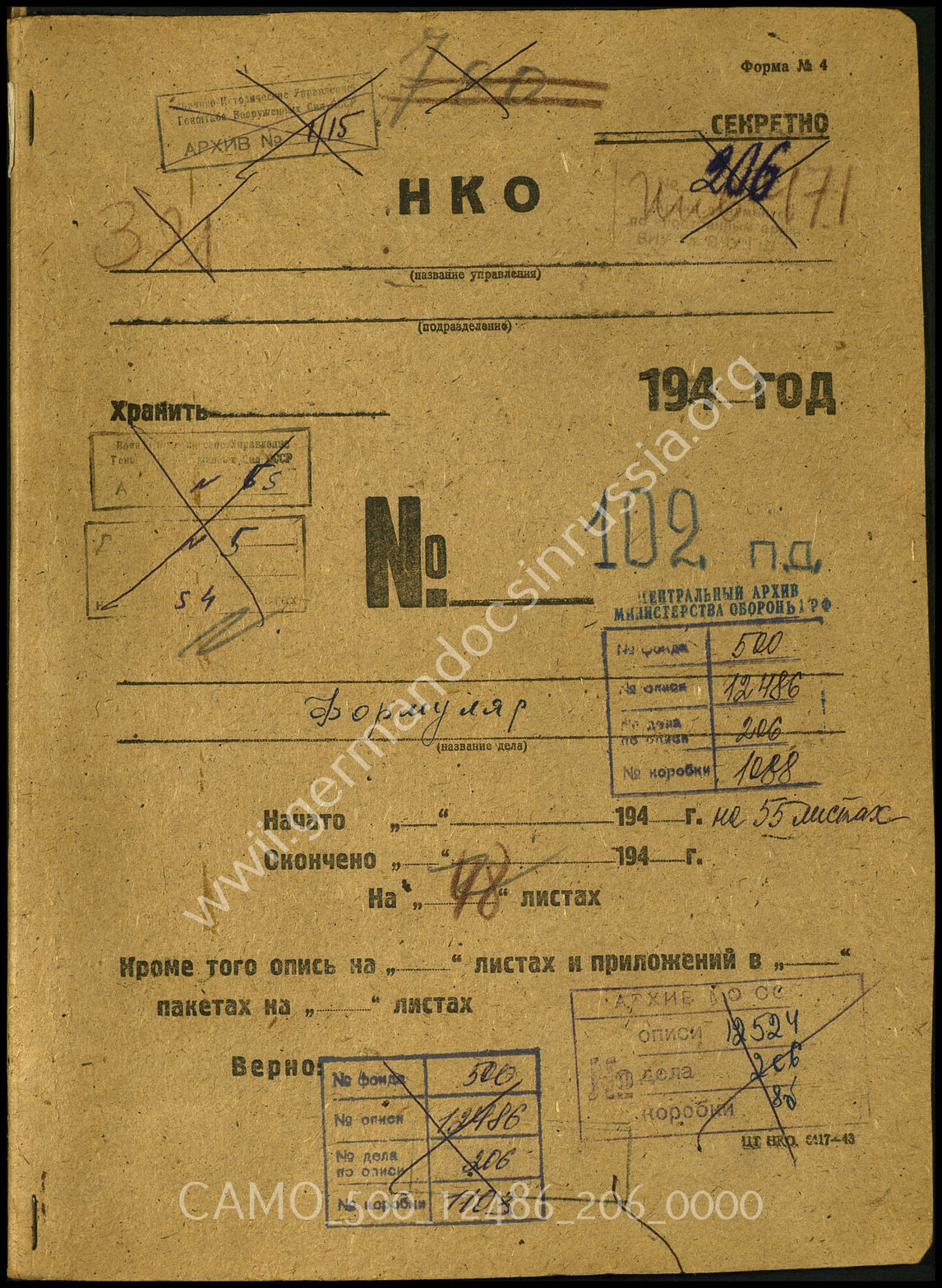Top Фонд 500 Опись 12486 - Формуляры Разведывательного управления Красной Армии ... Дело 206: Документы Разведывательного Управления Генерального штаб...