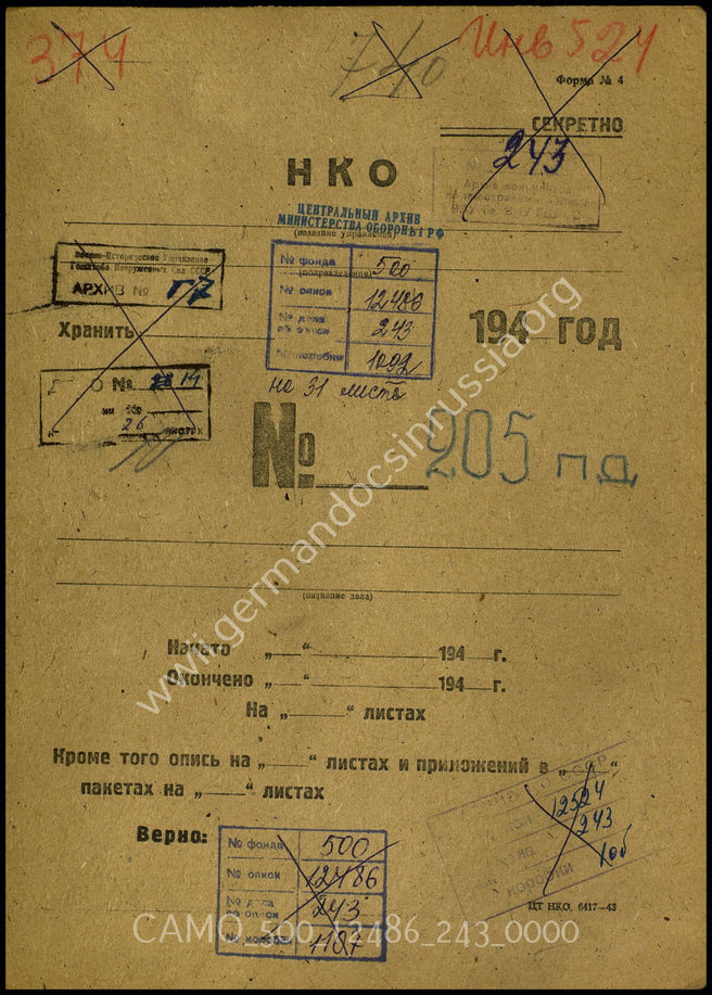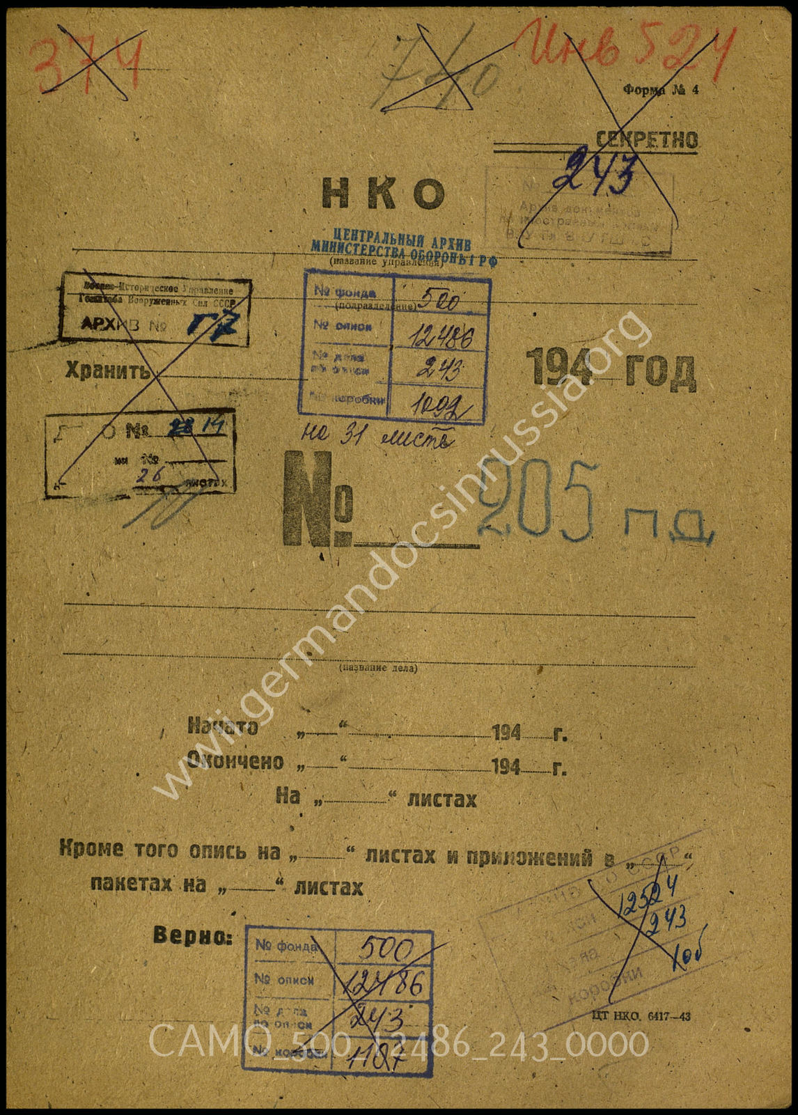 Дело 243: Документы Разведывательного Управления Генерального штаба Красной Армии: формуляры с развединформацией 205-й пехотной дивизии, допросы военнопленных и перебежчиков и проч.