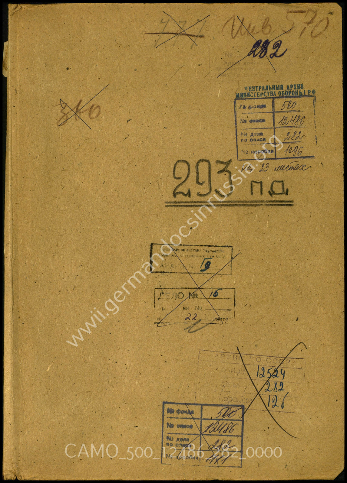 Дело 282: Документы Разведывательного Управления Генерального штаба Красной Армии: формуляры с развединформацией 293-й пехотной дивизии, справочные данные, допросы военнопленных и проч.