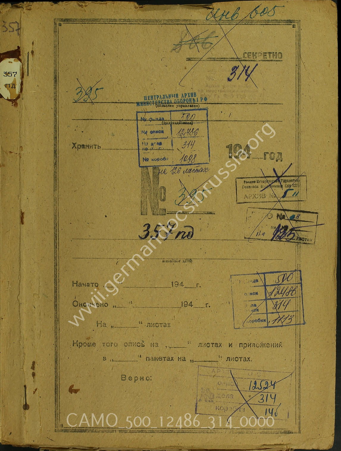 Дело 314: Документы Разведывательного Управления Генерального штаба Красной Армии: формуляры с развединформацией 357-й пехотной дивизии, справочные данные, допросы военнопленных и перебежчиков и проч.