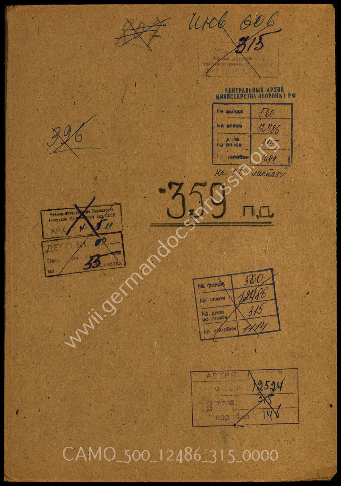 Дело 315: Документы Разведывательного Управления Генерального штаба Красной Армии: формуляры с развединформацией 359-й пехотной дивизии, справочные данные, допросы военнопленных и перебежчиков и проч.