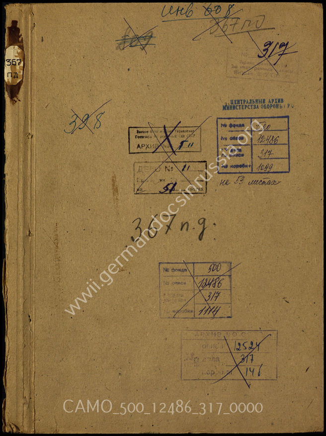 Дело 317: Документы Разведывательного Управления Генерального штаба Красной Армии: формуляры с развединформацией 367-й пехотной дивизии, справочные данные, данные о потерях дивизии, допросы военнопленных и проч.