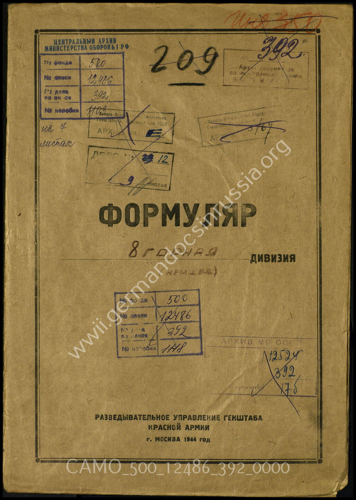 Дело 392: Документы Разведывательного Управления Генерального штаба Красной Армии: формуляры с развединформацией 8-й горнопехотной дивизии, справочные данные