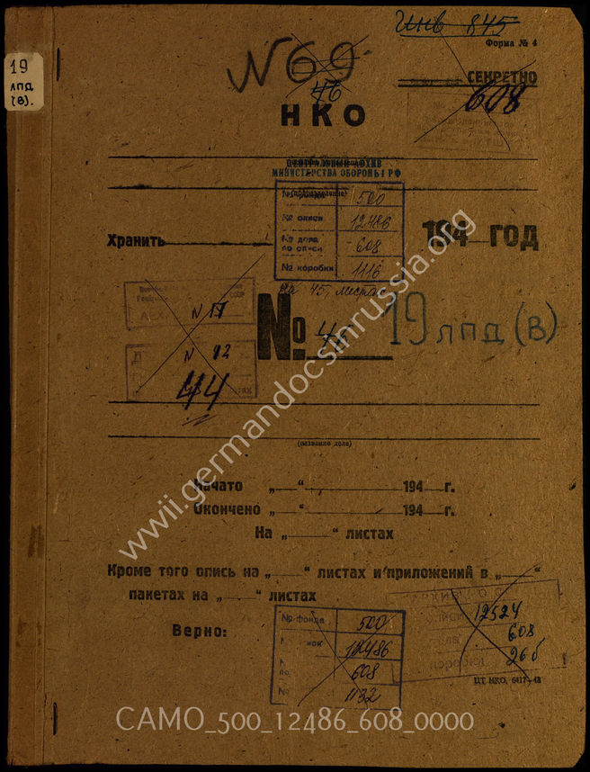 Дело 608: Документы Разведывательного Управления Генерального штаба Красной Армии: формуляры с развединформацией 19-й венгерской королевской резервной дивизии (в советских документах числится как 19-я легкая пехотная дивизия) и проч.