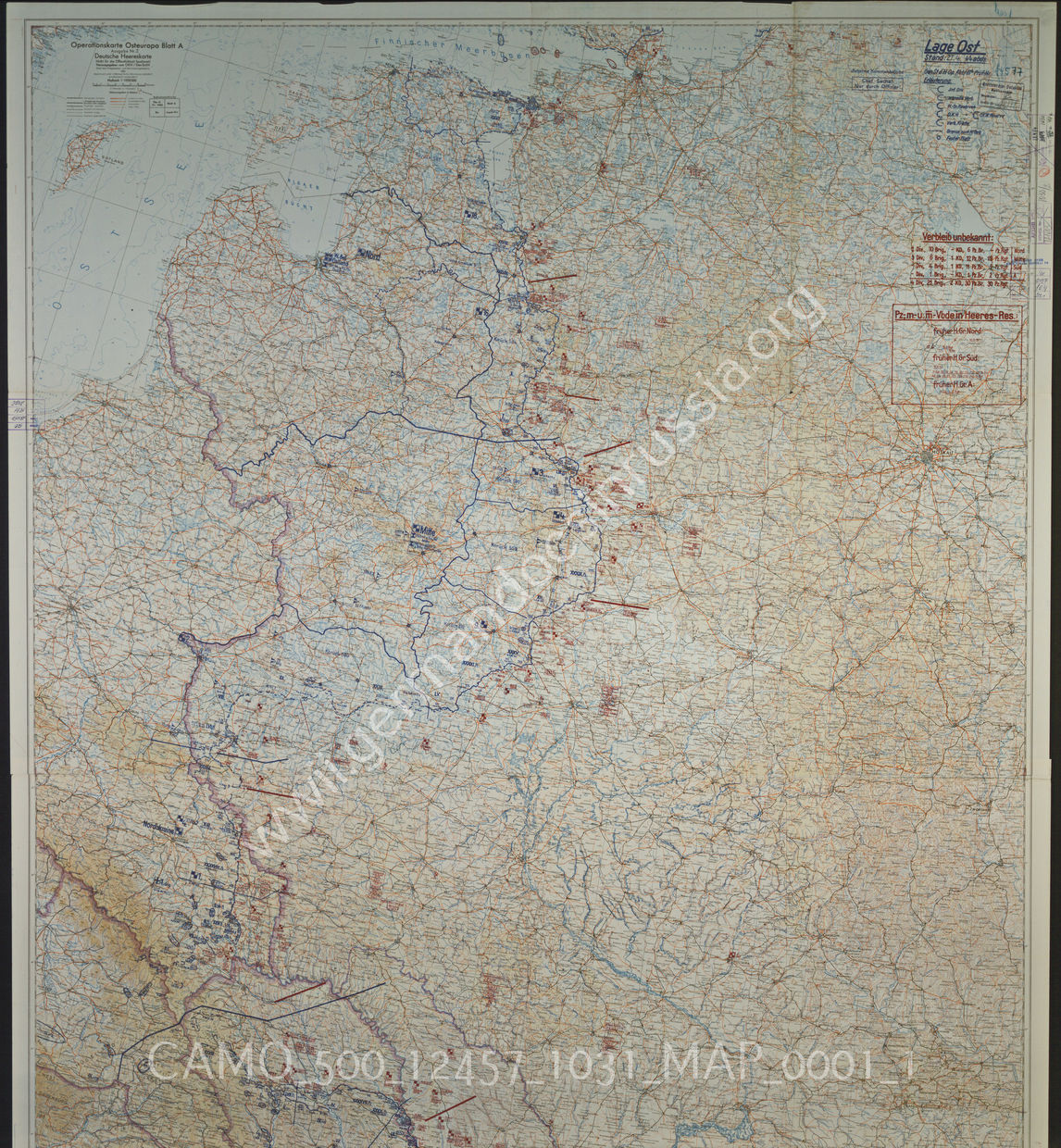 Дело 1031: Документы отдела IIIb оперативного управления Генерального штаба ОКХ: карта «Положение на Востоке» - Карта, показывающая положение войск вермахта на германо-советском фронте, включая положение частей Красной Армии, по состоянию на 21.04.1944