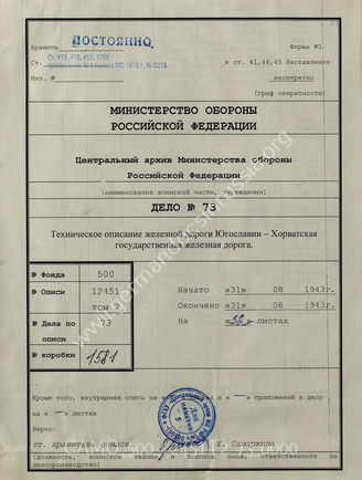 Top Фонд 500 Опись 12451T2 Akte 73: Unterlagen des Generals des Transportwesens Südost: Streck...