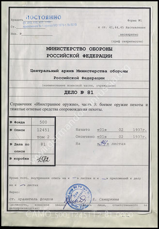 Top Фонд 500 Опись 12451T2 Akte 81: D 98/3* – Waffen des Auslandes, Teil 3: Infanteriewaffen u...