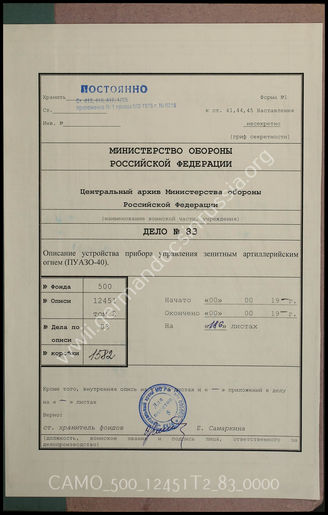 Top Фонд 500 Опись 12451T2 Akte 83: Ausarbeitung: Theorie und Arbeitsweise des Kommandogeräts 40