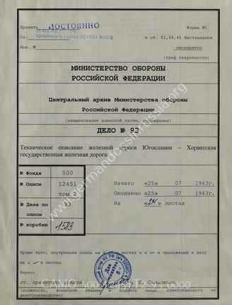 Top Фонд 500 Опись 12451T2 Akte 93: Unterlagen des Generals des Transportwesens Südost: Streck...