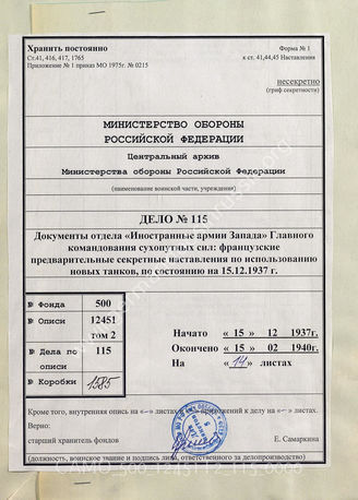 Akte 115: Unterlagen der Abteilung Fremde Heere West beim Generalstab des Heeres im OKH: Übersetzung einer französischen Vorschrift aus dem Jahr 1937 für den Einsatz von Panzerabteilungen der Heeresreserve