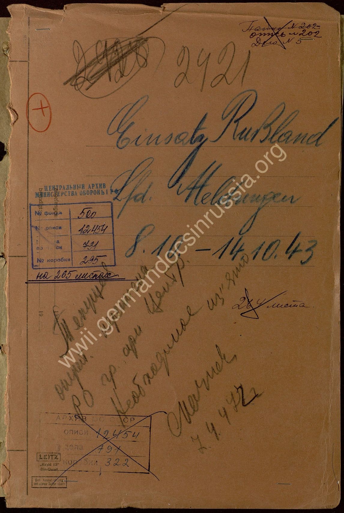 Дело 731. Документы разведывательного отдела группы армий «Центр»: текущие донесения (08.10.-14.10.1943).