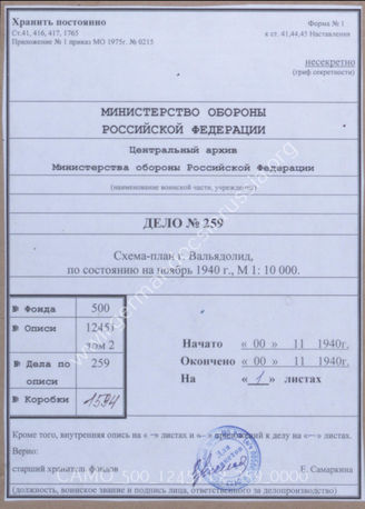 Akte 259: Unterlagen der Abteilung für Kriegskarten und Vermessungswesen (IV. Mil.-Geo.) im Generalstab des Heeres im OKH: Stadtplan Valladolid, M 1:10.000, November 1940 (Anlage zu militärgeographische Studie über Spanien und Portugal)