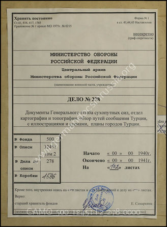 Top Фонд 500 Опись 12451T2 Akte 278: Unterlagen der Abteilung für Kriegskarten und Vermessungs...