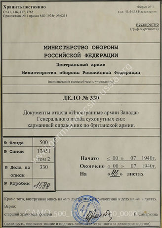 Akte 330: Unterlagen der Abteilung Fremde Heere West beim Generalstab des Heeres im OKH: Taschenbuch „Britisches Heer“ (Bestimmt für den Gebrauch der Truppe im Felde), 4. Auflage, Berlin: Reichsdruckerei, 1940