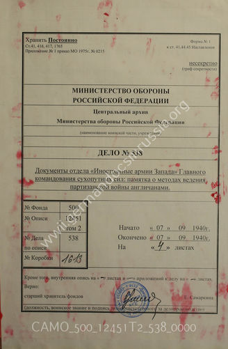 Top Фонд 500 Опись 12451T2 Akte 538: Unterlagen der Abteilung Fremde Heere West beim Generalst...
