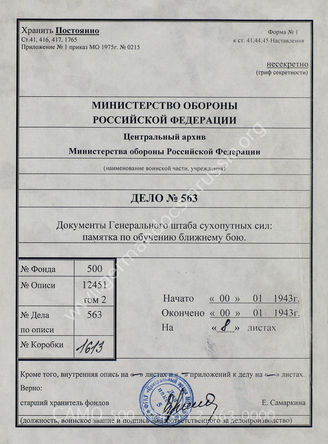 Akte 563: Unterlagen des Chefs des Ausbildungswesens im Ersatzheer beim Chef der Heeresrüstung und Befehlshaber des Ersatzheeres im OKH: Merkblatt für die Nahkampfausbildung