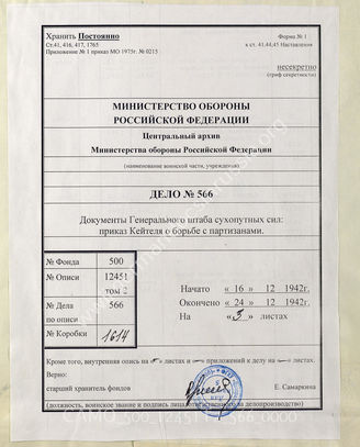 Top Фонд 500 Опись 12451T2 Akte 566: Unterlagen der Ia-Abteilung der Heeresgruppe Mitte: Schre...
