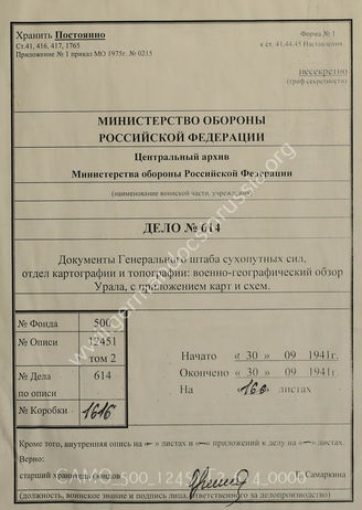 Akte 614: Unterlagen der Abteilung für Kriegskarten und Vermessungswesen (IV. Mil.-Geo.) im Generalstab des Heeres im OKH: Militärgeographische Angaben über das Europäische Russland: Mappe L – Ural-Gebiete