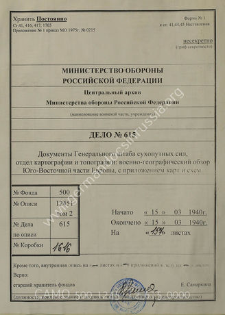 Top Фонд 500 Опись 12451T2 Akte 615: Unterlagen der Abteilung für Kriegskarten und Vermessungs...