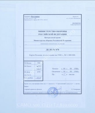 Akte 870: Unterlagen des Reichsamtes für Landesaufnahme: Karte Westpreußens, Ostpreußens und des Generalgouvernements mit eingetragenen Grenzen der Interessengebiete des Deutschen Reiches und der Sowjetunion, M 1:800.000, Berlin 1940