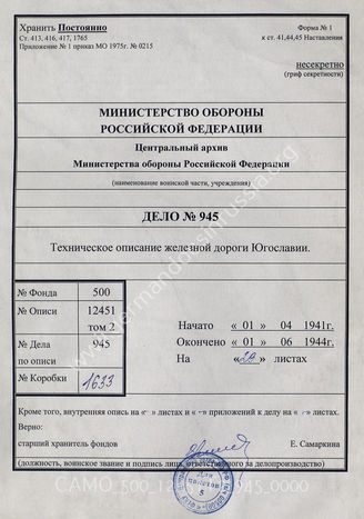 Top Фонд 500 Опись 12451T2 Akte 945: Unterlagen des Generals des Transportwesens Südost: Strec...